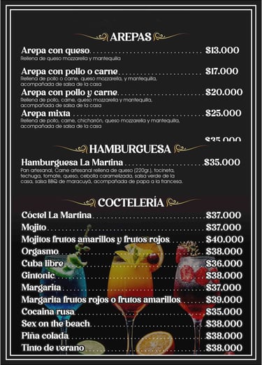 En Restaurante La Martina, sabemos que la comida es solo una parte de la experiencia. Por eso, hemos creado un ambiente donde la música en vivo, las bebidas refrescantes y los postres caseros son los protagonistas.