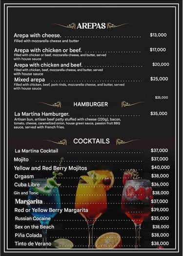 At La Martina Restaurant, we know that food is only part of the experience. That's why we've created an atmosphere where live music, refreshing drinks, and homemade desserts take center stage.