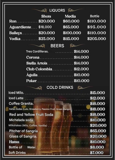 We are a restaurant, café, and bar that celebrates authentic Colombian Creole cuisine in a welcoming, family-friendly atmosphere. Located at the end of Calle Real, right next to the stairs leading to the viewing platform, we offer a unique dining experience.