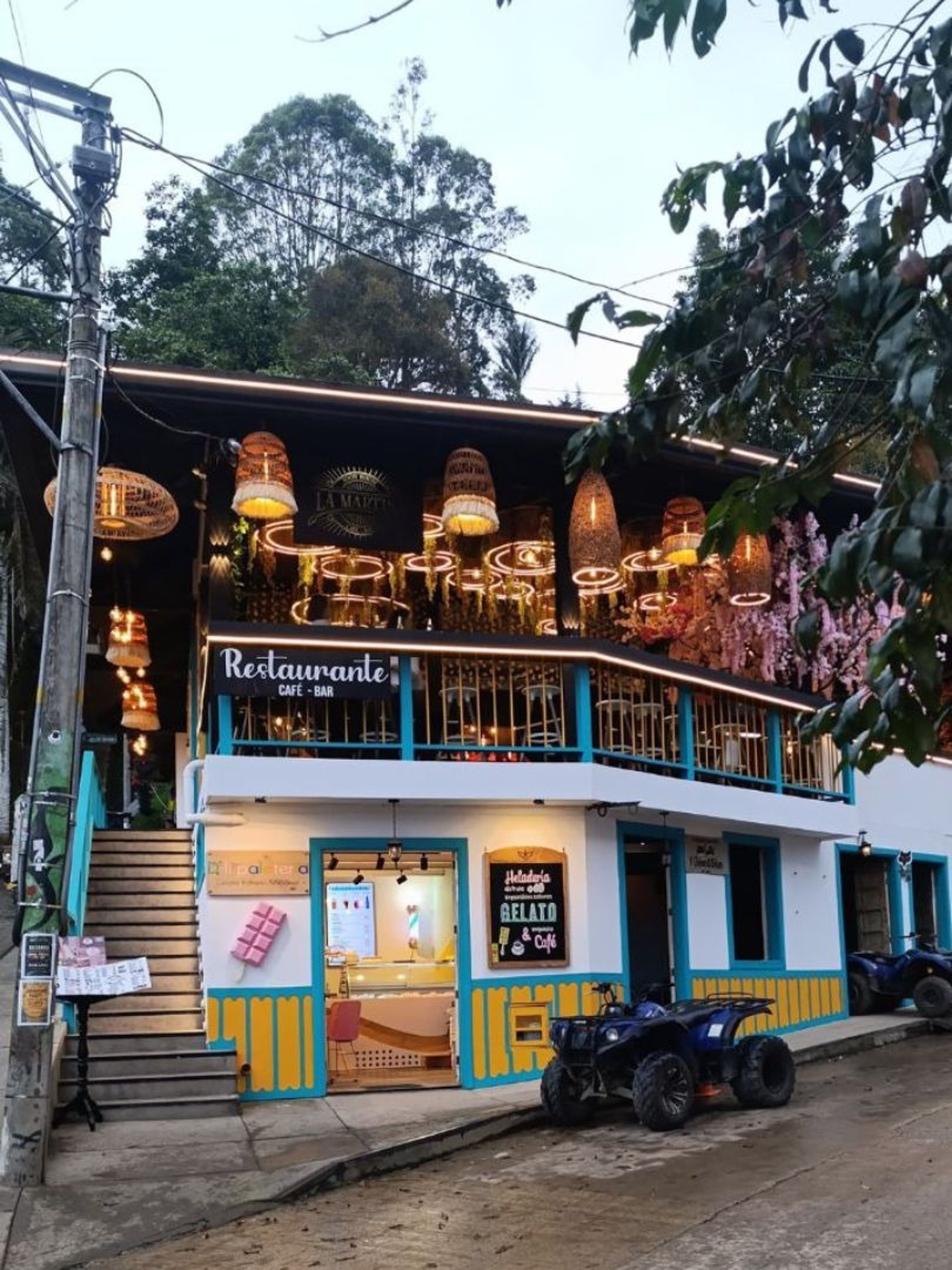 Restaurante La Martina se encuentra al pie de las escaleras del mirador, en Salento, Quindío, ideal para celebrar eventos.
