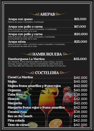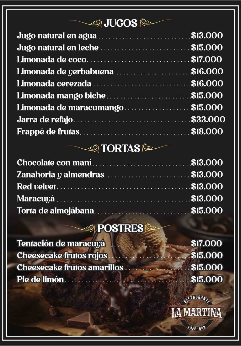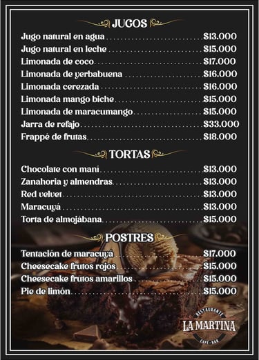 En Restaurante La Martina, sabemos que la comida es solo una parte de la experiencia. Por eso, hemos creado un ambiente donde la música en vivo, las bebidas refrescantes y los postres caseros son los protagonistas.